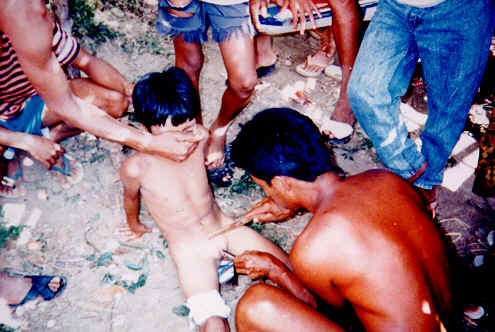 Hospital/USA "Bris"/U.K. "Bris"/Israel Tyup Sultan Mosque/Istanbul "Circumicsion Palace"/Istanbul "Kataan"/Turkey "Tuli"/Philippines "Tuli"/Philippines "Tuli"/Philippines Aboriginal Circumcision/Australia Circumcision/AfricaWhile the extremes of male and female genital cutting may differ in the effects upon individuals, one common denominator is the fact that no matter how "serious" or "minor" the public may perceive the differences in harm to be, the damage is often an all-consuming issue to the individual who must live with the loss of their inherent genital integrity, especially when the genital loss and scars were imposed on them when they could not consent, refuse or escape.